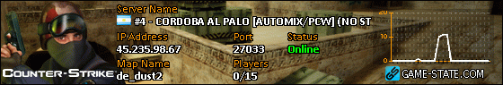 <a href="https://www.game-state.com/45.235.98.67:27033/"><img src="https://www.game-state.com/45.235.98.67:27033/430x73_FFFFFF_FF9900_000000_000000.png" alt="www.Game-State.com" style="border-style: none;" /></a>