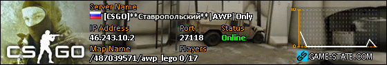 <a href="https://www.game-state.com/46.243.10.2:27118/"><img src="https://www.game-state.com/46.243.10.2:27118/430x73_FFFFFF_FF9900_000000_000000.png" alt="www.Game-State.com" style="border-style: none;" /></a>