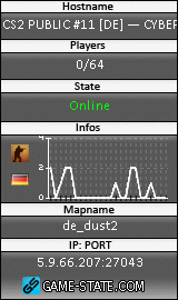 <a href="https://www.game-state.com/5.9.66.207:27043/"><img src="https://www.game-state.com/5.9.66.207:27043/430x73_FFFFFF_FF9900_000000_000000.png" alt="www.Game-State.com" style="border-style: none;" /></a>