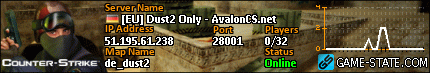 <a href="https://www.game-state.com/51.195.61.238:28001/"><img src="https://www.game-state.com/51.195.61.238:28001/430x73_FFFFFF_FF9900_000000_000000.png" alt="www.Game-State.com" style="border-style: none;" /></a>
